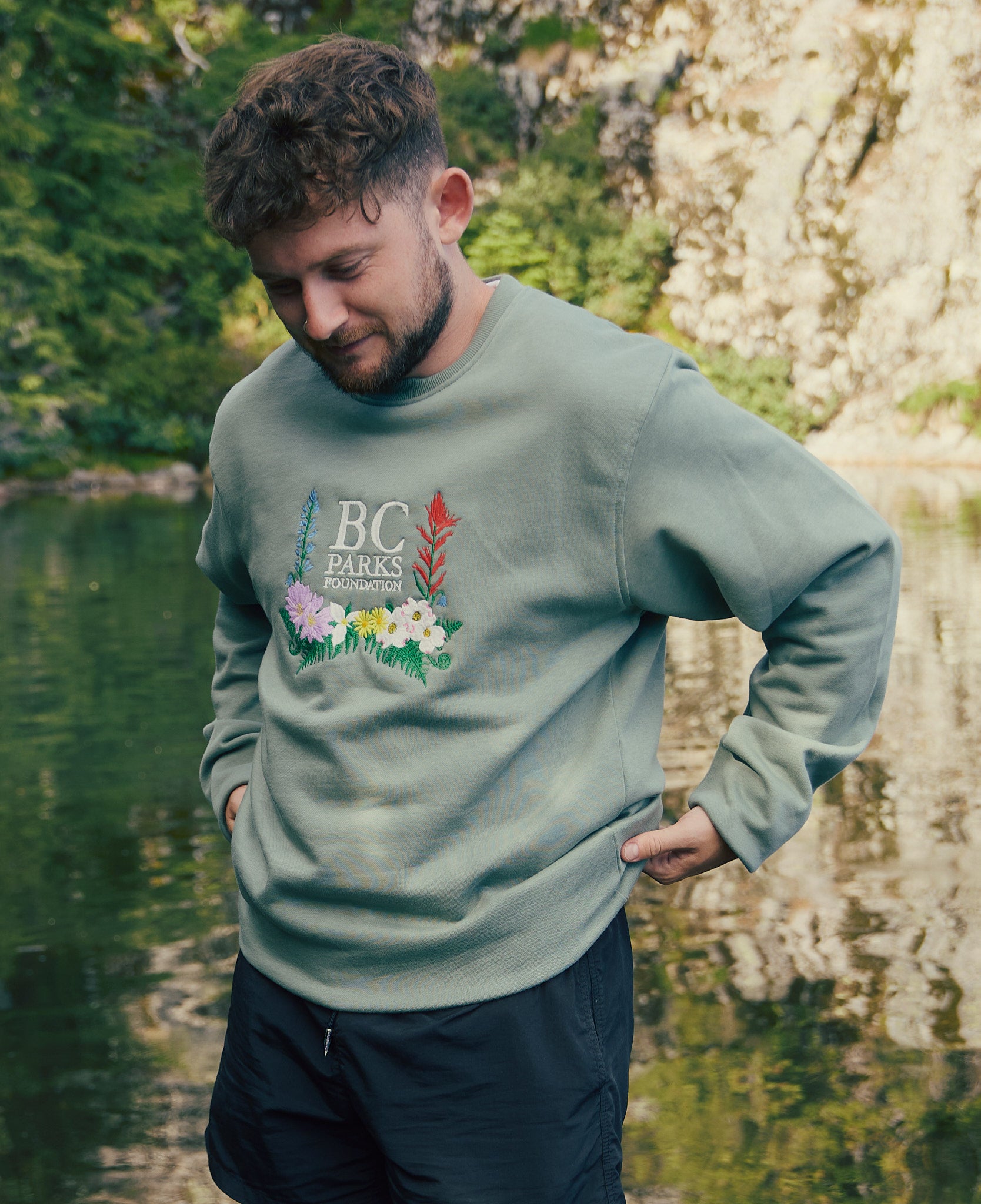 Embrace the beauty of British Columbia's native wildflowers with our Wildflower Crew Neck Sweater. This premium garment features embroidered designs showcasing Bitter Root, Alpine Lupine, Paintbrush, Bluebells, Wooly Sunflower, Dogwood, and Trillium flowers. Each sweater is meticulously crafted to highlight the stunning flora that graces our landscapes.