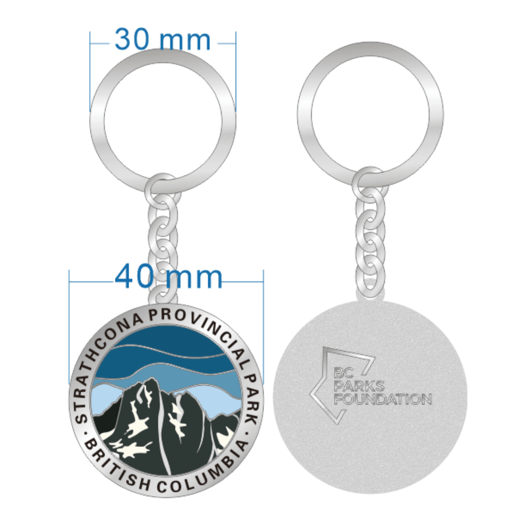 Carry a piece of Vancouver Island's rugged wilderness with you wherever you go with the BC Parks Foundation Strathcona Provincial Park Keychain. From the serene shores of Buttle Lake to the alpine meadows of Forbidden Plateau, Strathcona offers unparalleled beauty and adventure in British Columbia.