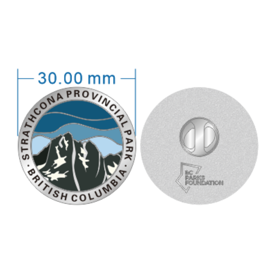 Share Your Passion: Showcase your love for Strathcona Provincial Park by wearing the lapel pin proudly. Share your outdoor experiences and tag @bcparksfdn on Instagram to connect with a community dedicated to preserving BC's natural treasures.